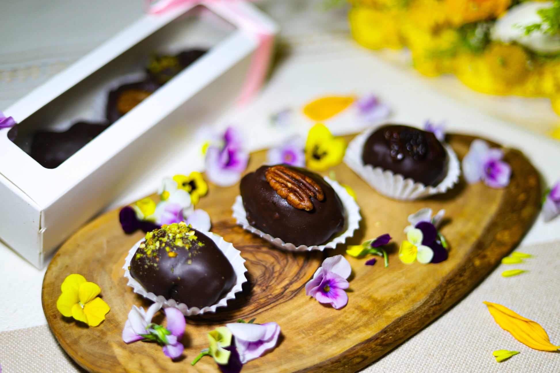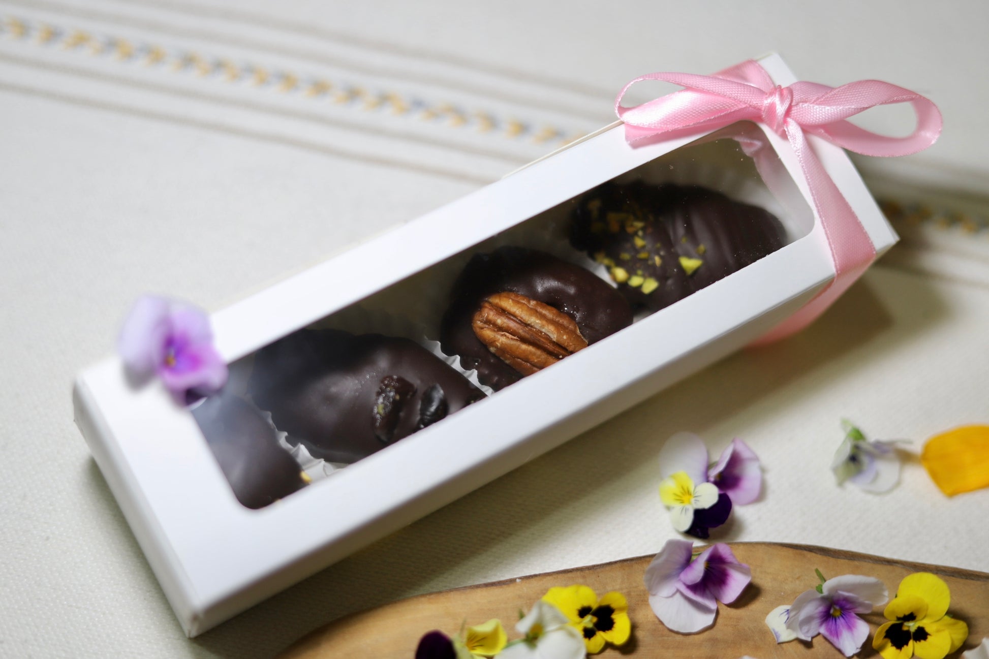 Discover the most delightful version of our dates, lovingly filled with almond paste, enrobed in rich dark chocolate or vegan white chocolate and adorned with either pistachios, cherries, pecans or dried fruits. This sweet treat is a heartfelt way to express your love; each bite is a burst of flavor and quality that will warm the heart. Share the gift of unforgettable moments with this thoughtful present, and make someone feel truly cherished.